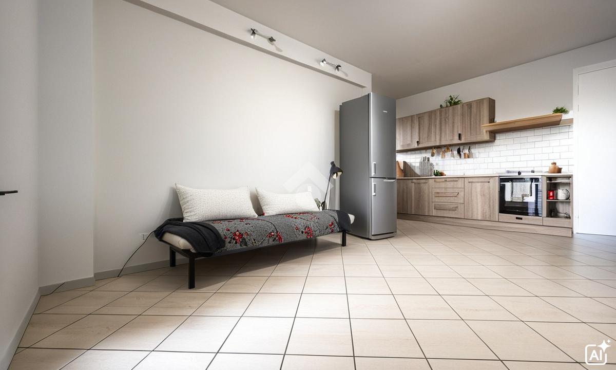 Varcando la porta blindata d’ingresso, si viene accolti da un ampio soggiorno estremamente luminoso, grazie alla generosa apertura sul terrazzo. L’ambiente è pensato per essere vissuto a 360 gradi: la zona living, spaziosa e accogliente, consente di organizzare diverse disposizioni d’arredo, creando un’atmosfera calda e familiare. L’angolo cottura, ben inserito nel contesto del soggiorno, è pratico, razionale e permette di creare una zona giorno unica .