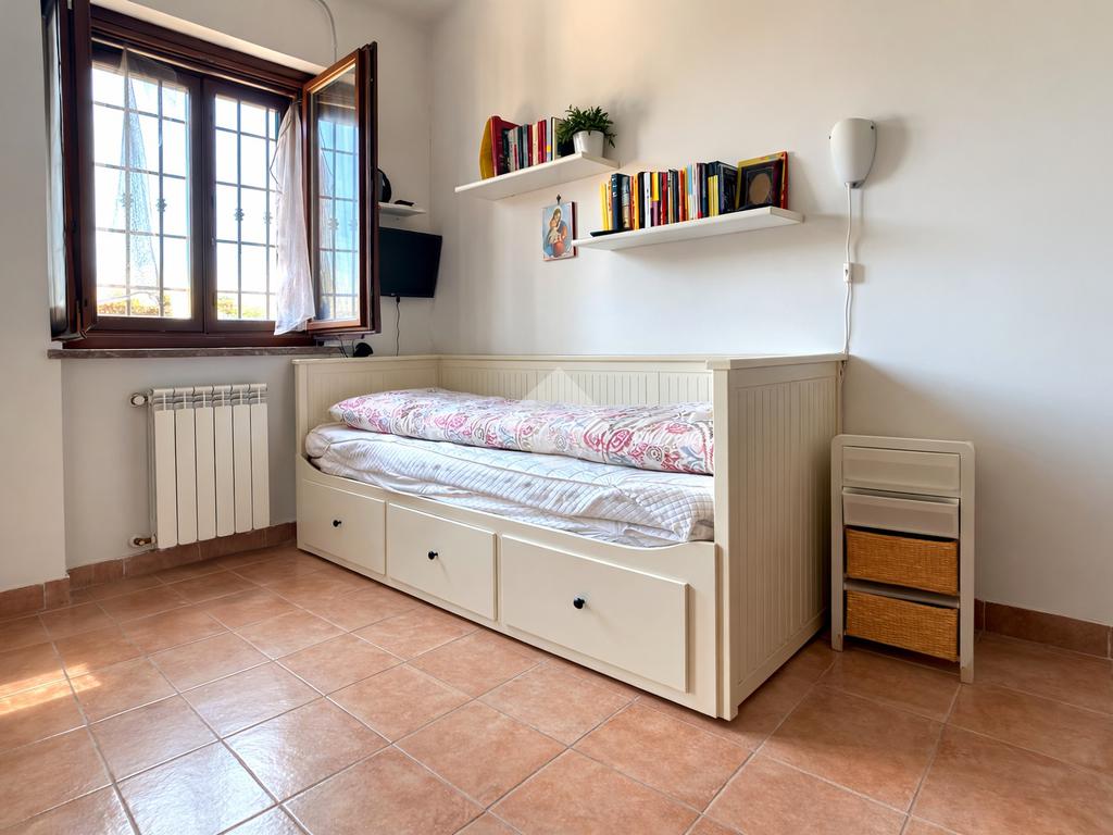 Salendo tramite le scale interne raggiungiamo il piano superiore dedicato alla zona notte, pensata per garantire privacy e tranquillità. Qui troviamo una camera da letto matrimoniale ampia e luminosa, valorizzata dalla presenza di un balcone privato che dona ulteriore luminosità all’ambiente e rappresenta uno spazio ideale per godere di momenti di relax all’aperto. Completa il piano una cameretta con soppalco, perfetta come stanza per bambini, ospiti o come studio, e un secondo bagno dotato di vasca, comodo e funzionale per le esigenze della famiglia.