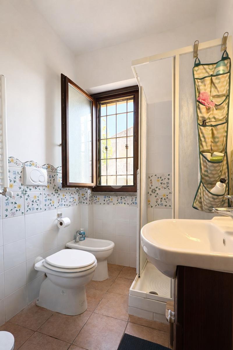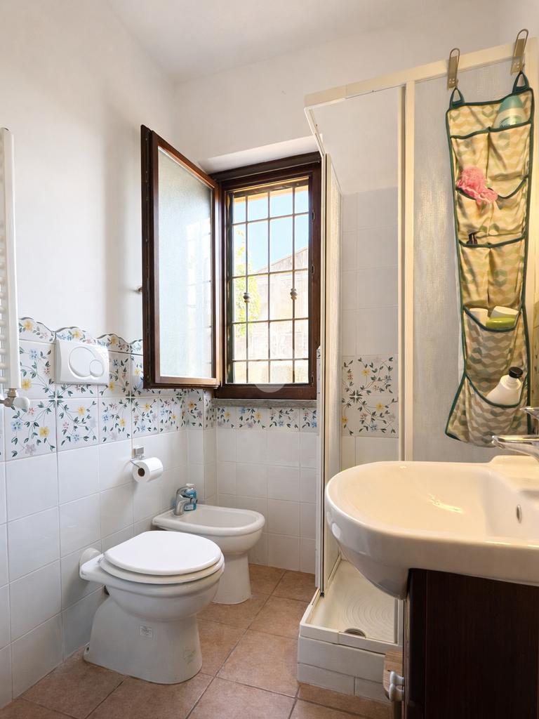 Sempre al piano terra troviamo anche un bagno con doccia, pratico e ben distribuito, che serve comodamente la zona giorno.
